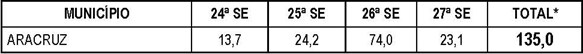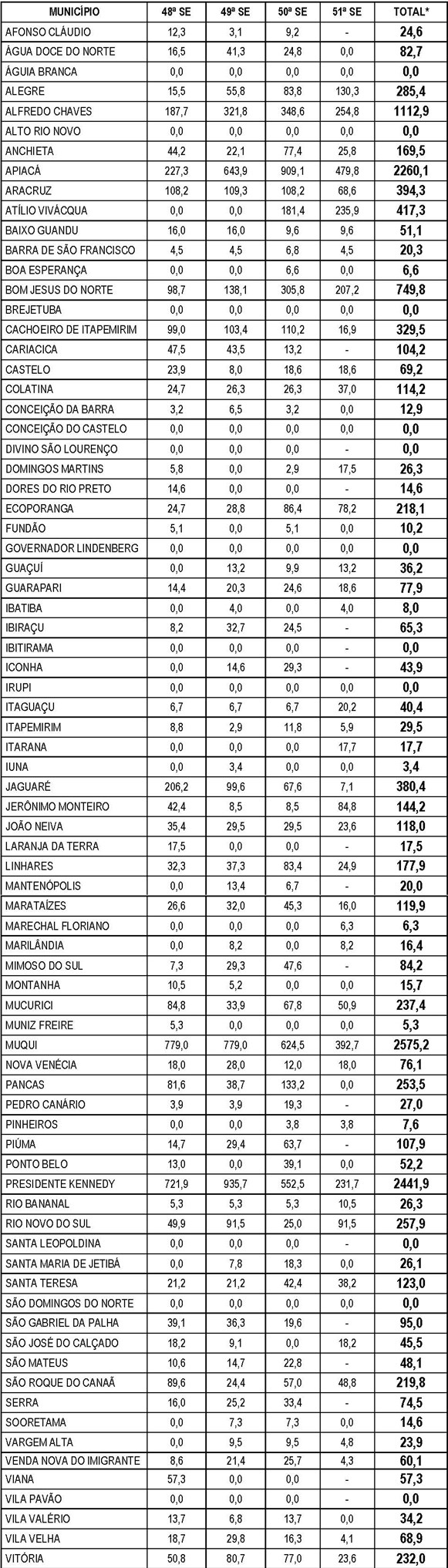 A Secretaria de Estado da Saúde (Sesa) vem registrando queda no número de casos notificados de dengue e, do total acumulado das últimas quatro semanas, 77 (98,71%) do total de 78 cidades capixabas aparecem com baixa incidência (confira na tabela abaixo). Isso é resultado do trabalho do Gabinete de Monitoramento de Combate ao Aedes aegypti, que avalia e define estratégias de combate ao mosquito, em conjunto com municípios e superintendências regionais de Saúde do Estado, e do apoio da população.