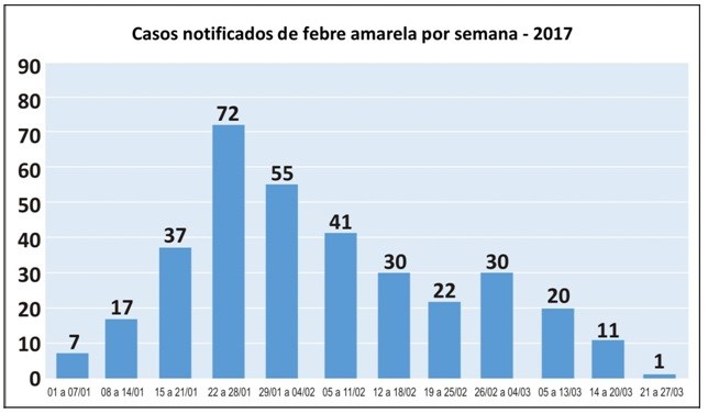 Este ano, até sexta-feira (24), a Sesa recebeu 344 notificações de suspeita de febre amarela. Setenta e três notificações foram descartadas. Do total de 271 casos, 115 foram confirmados para febre amarela silvestre, sendo que 37 casos evoluíram para óbito – Muniz Freire (05), Brejetuba (04), Colatina (04), Irupi (03), Ibatiba (02), Itarana (02), Laranja da Terra (02), Pancas (02), Afonso Cláudio (02), Conceição do Castelo (02), Domingos Martins (02), Santa Maria de Jetibá (02), São Roque do Canaã (01), Vargem Alta (01), Conceição da Barra (01), Cariacica (01) e Aracruz (01). Os óbitos atualizados são de casos anteriores, que tiveram a investigação concluída nesta data.