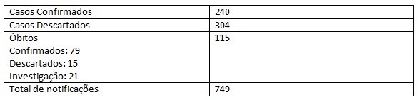 A Secretaria de Estado da Saúde (Sesa) recebeu, este ano, até quinta-feira (11), 749 notificações de suspeita de febre amarela. Trezentas e quatro notificações foram descartadas. Do total de 445 casos, 240 foram confirmados para febre amarela silvestre, ou seja, com transmissão ocorrida na área rural.