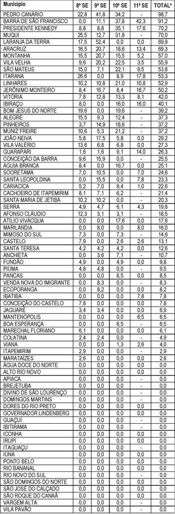 O Boletim Epidemiológico da Dengue é apresentado de duas formas: uma tabela com a indicação das notificações em números absolutos por semana epidemiológica e outra com a incidência de casos de dengue por município.