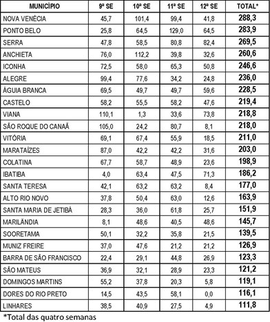 Foram notificados 32.299 casos de dengue entre 03 de janeiro e 26 de março de 2016 no Espírito Santo. Destes, 339 são suspeitos da forma grave, 12 são óbitos confirmados e 15 são óbitos sob investigação. No mesmo período, a taxa de incidência da doença no Estado ficou em 821,88. Essas informações são enviadas à Secretaria de Estado da Saúde até o dia anterior à divulgação do boletim epidemiológico.