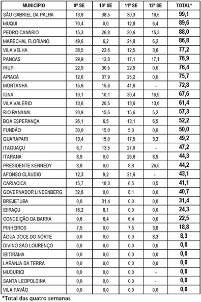 Municípios com incidência baixa nas últimas quatro semanas
