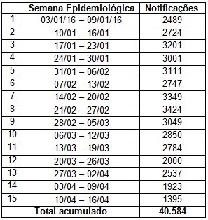 Foram notificados 40.584 casos de dengue entre 03 de janeiro e 16 de abril de 2016 no Espírito Santo. Destes, 421 são suspeitos da forma grave, 12 são óbitos confirmados e 21 são óbitos sob investigação. No mesmo período, a taxa de incidência da doença no Estado ficou em 1032,70. Essas informações são enviadas à Secretaria de Estado da Saúde até o dia anterior à divulgação do boletim epidemiológico.