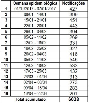 O Boletim Epidemiológico da Dengue é apresentado de duas formas: uma tabela com a indicação das notificações em números absolutos por semana epidemiológica e outra com a incidência de casos de dengue por município.