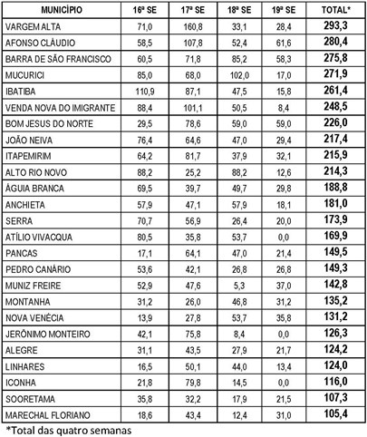 O Boletim Epidemiológico da Dengue é apresentado de duas formas: uma tabela com a indicação das notificações em números absolutos por semana epidemiológica e outra com a incidência de casos de dengue por município.