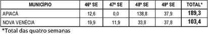 O Boletim Epidemiológico da Dengue é apresentado de duas formas: uma tabela com a indicação das notificações em números absolutos por semana epidemiológica e outra com a incidência de casos de dengue por município.