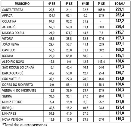 Municípios com incidência média nas últimas quatro semanas