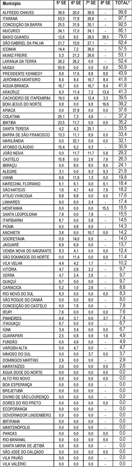 Municípios com incidência baixa nas últimas quatro semanas
