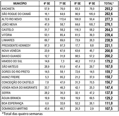 Municípios com incidência alta nas últimas quatro semanas