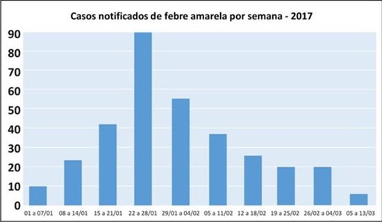 Este ano, até terça-feira (14), a Secretaria de Estado da Saúde do Espírito Santo (Sesa) recebeu 295 notificações de suspeita de febre amarela. Cinquenta e três notificações foram descartadas. Do total de 242 casos, 92 foram confirmados para febre amarela silvestre, sendo que 21 casos evoluíram para óbito – Muniz Freire (03), Colatina (03), Ibatiba (02), Irupi (02), Itarana (02), Brejetuba (03), Laranja da Terra (01), Pancas (01), São Roque do Canaã (01), Afonso Cláudio (01), Conceição do Castelo (01) e Aracruz (01).