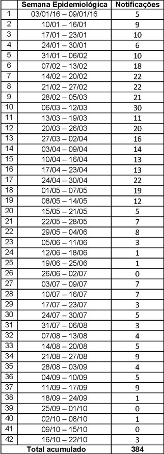 Tabela com o número de notificações de Chikungunya por semana epidemiológica 2016