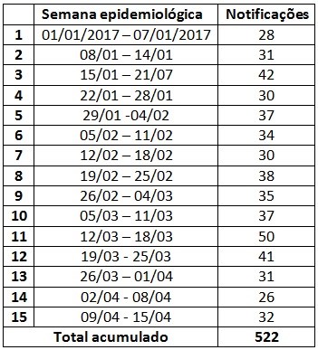 A Secretaria de Estado da Saúde (Sesa) informa que foram notificados no Espírito Santo 522 casos de Chikungunya entre 1º de janeiro e o último sábado (15). Dentro desse total há 01 óbito confirmado. Há registro de circulação do vírus em 13 municípios: Aracruz, Afonso Cláudio, Baixo Guandu, Cariacica, Cachoeiro de Itapemirim, Colatina, Guarapari, Guaçuí, Montanha, São Mateus, Vila Velha, Vitória e Serra.