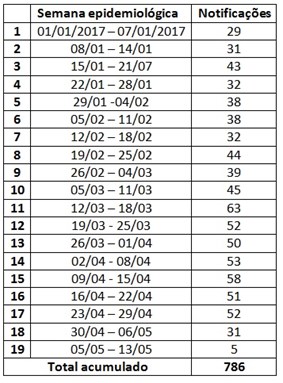 Tabela com o número de casos de Chikungunya por semana epidemiológica 2017
