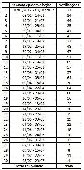 A Secretaria de Estado da Saúde (Sesa) informa que foram notificados no Espírito Santo 1.149 casos de Chikungunya entre 1º de janeiro de 2017 e o último sábado (29). Dentro desse total há 01 óbito confirmado. Há registro de circulação do vírus em 19 municípios: Alfredo Chaves, Aracruz, Afonso Cláudio, Baixo Guandu, Cariacica, Cachoeiro de Itapemirim, Conceição da Barra, Colatina, Guarapari, Guaçuí, Jerônimo Monteiro, Linhares, Montanha, Nova Venécia, Serra, São Mateus, Vargem Alta, Vila Velha e Vitória.