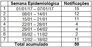 Tabela com o número de casos de zika por semana epidemiológica 2017