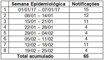 Tabela com o número de casos de zika por semana epidemiológica 2017
