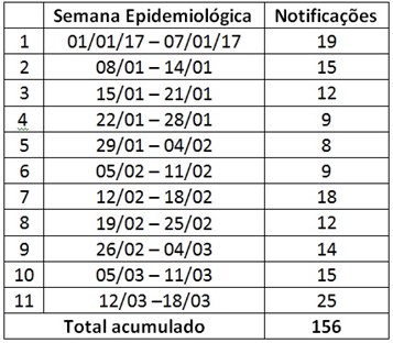 Tabela com o número de casos de zika por semana epidemiológica 2017