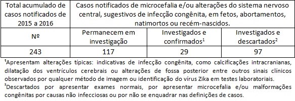 Todos os casos estão sendo investigados. Vale ressaltar que a microcefalia pode ser causada por diversos agentes infecciosos além do vírus zika, tais como sífilis, toxoplasmose, rubéola, citomegalovírus e herpes viral.