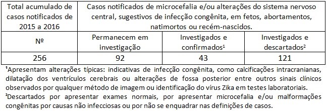 Todos os casos estão sendo investigados. Vale ressaltar que a microcefalia pode ser causada por diversos agentes infecciosos além do vírus zika, tais como sífilis, toxoplasmose, rubéola, citomegalovírus e herpes viral.