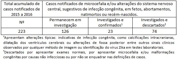 Todos os casos estão sendo investigados. Vale ressaltar que a microcefalia pode ser causada por diversos agentes infecciosos além do vírus zika, tais como sífilis, toxoplasmose, rubéola, citomegalovírus e herpes viral.